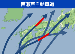 があります。 通行止めの頻度は、神戸淡路鳴門自動車道で最も高く、