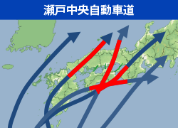 台風接近時、本四道路の海峡部は、強い横風が吹き通行止めになる可能性があります。海峡部の橋上という特殊な場所のため、